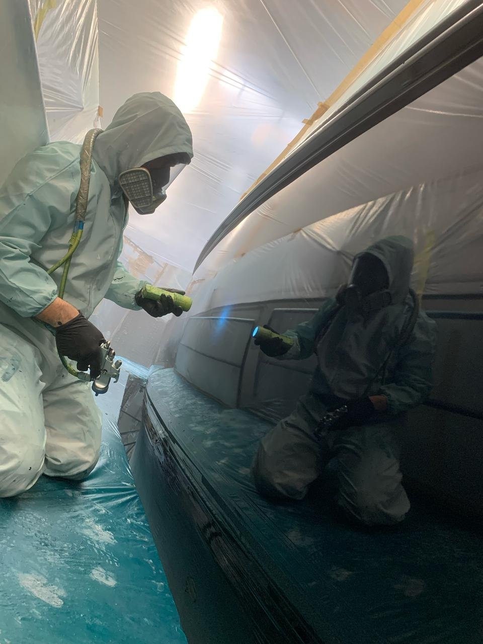 Η διαδικασία πραγματοποιήθηκε σε εσωτερικό, ελεγχόμενο περιβάλλον για τέλειο φινίρισμα με γυαλάδα, διασφαλίζοντας αντοχή και αισθητικό αποτέλεσμα στο κύτος.